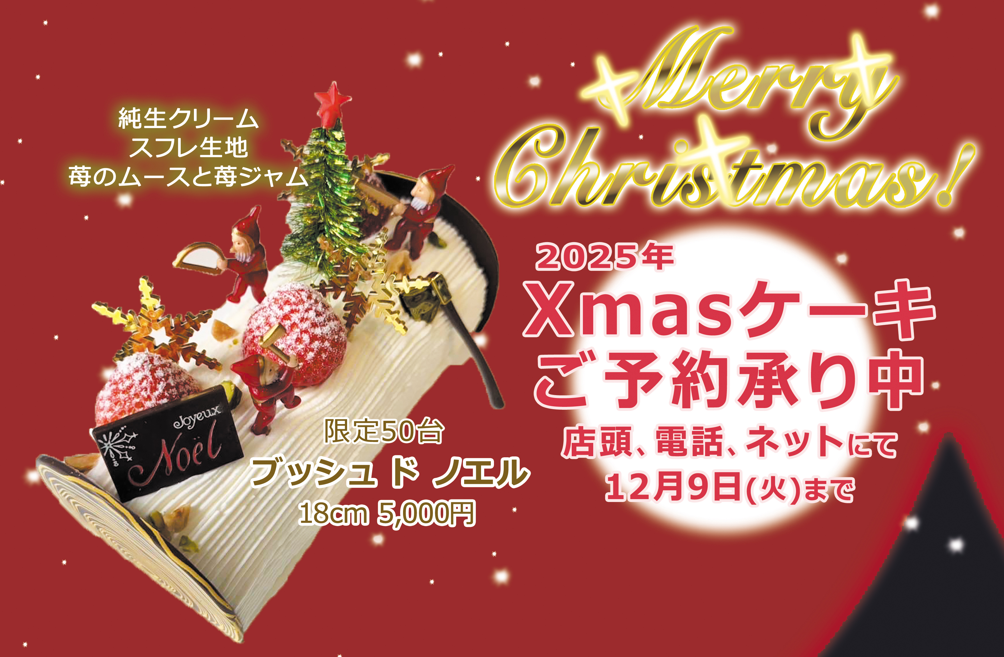 ご予約は店頭またはお電話か、Xmasケーキご予約フォームをご利用ください。